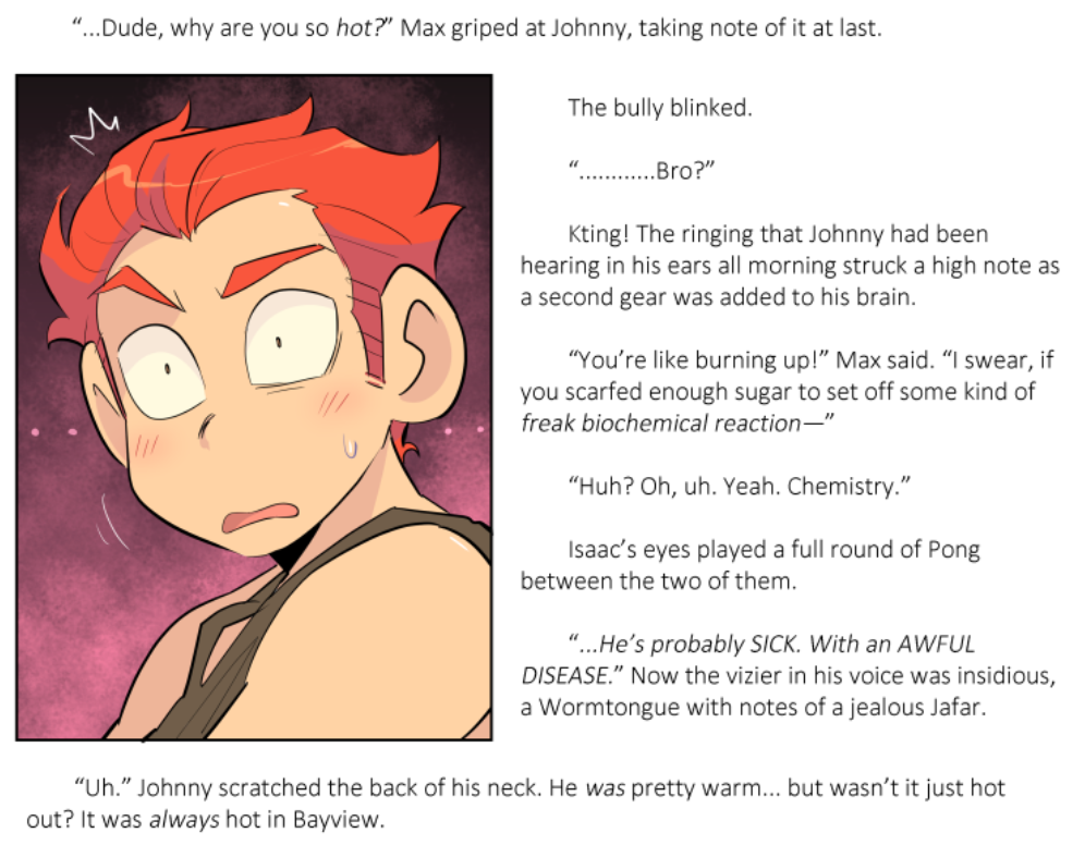 Behold Mouse's semi-random assortment of funny jokes, good art, ship moments, and unbelievably hard bars, capped by yours truly. I did a reread of the comic specifically looking to get my facts straight for an essay I want to write, so the images I took are slightly geared toward finding evidence for that paper... but I also just capped a lot of my favorite moments, too. Where I have additional thoughts I have put them in the hovertext, just as with the comic.